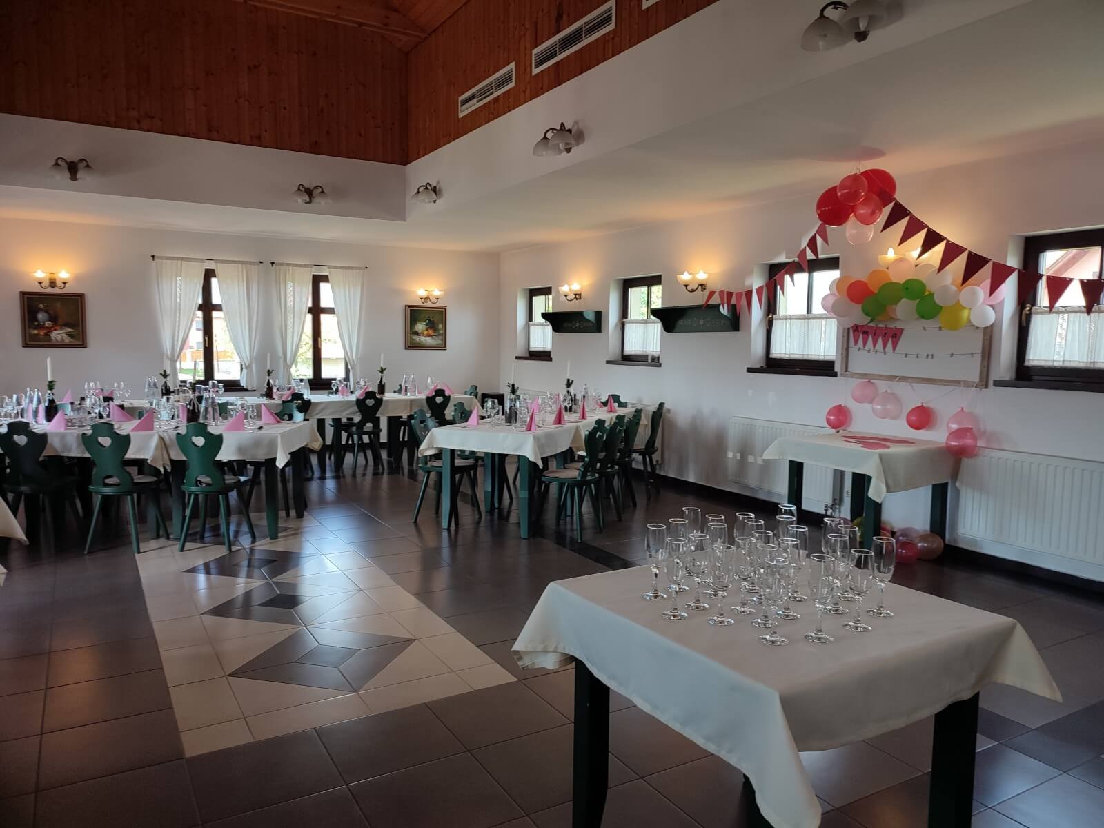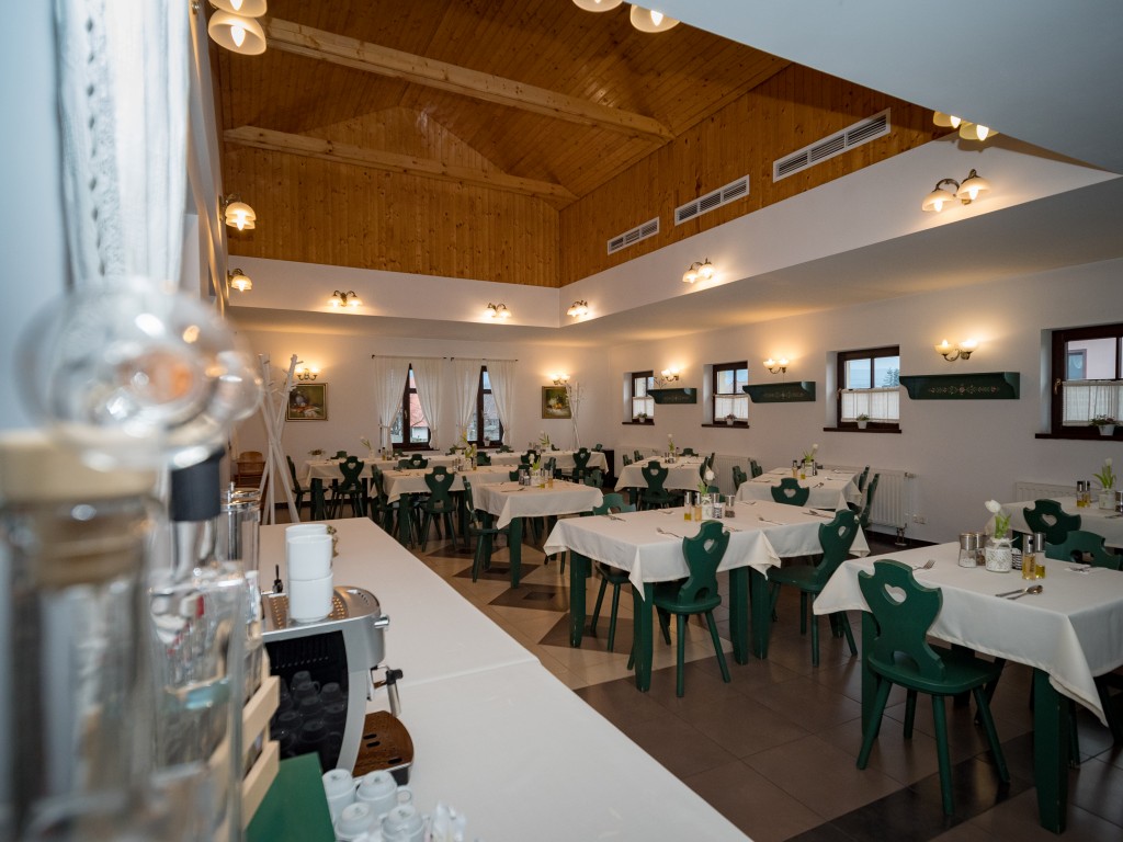 Restaurantul poate găzdui 50 de persoane: 4-6 persoane, cu motive secuiești, mese pictate manual. Oferim servicii de catering pentru maximum 80 de persoane cu ocazia evenimentelor. Restaurantul este un loc excelent pentru evenimente familiale și corporate, cu o ofertă de meniu de calitate și servicii profesionale conform așteptărilor. Putem organiza botezuri, ceremonii de inele, zile onomastice, zile de naștere, întâlniri între colegi sau orice eveniment similar de familie sau cu prietenii. În sala noastră de conferințe, organizăm întâlniri corporate și traininguri, cu pauze de cafea sau catering la cerere. Evenimentele sunt completate de bar și opțiunile de jocuri de acolo (cărți, alte jocuri de societate), precum și de cazare și alte servicii de agrement ale pensiunii, cum ar fi saună, tenis de masă, fitness, tenis.